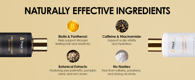 ThickTails is a collection of products designed to actively stimulate hair growth and reduce hair loss - to help you in those areas that are simpler to treat - leaving you with fuller, thicker, healthier hair with less breakage, more volume & less gray.